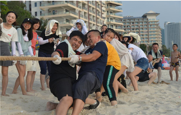 最后,,,,,,,工会还组织了沙滩拔河角逐。。。。。。参赛队员们个个摩拳擦掌,,,,,,,铆足了劲儿,,,,,,,只等评判员哨声一响便纷纷使出洪荒之力,,,,,,,同心协力往后拉,,,,,,,为“拔得头筹”而拼尽全力。。。。。。周围的观众也绝不示弱,,,,,,,变身啦啦队员,,,,,,,为自己的团队加油助威、齐声召唤。。。。。。一时间,,,,,,,欢呼声、呐喊声、加油声此起彼伏,,,,,,,将角逐逐渐推向了白热化。。。。。。拔河角逐充分展现BOBty人上下同心协力、坚韧不拔、敢拼敢为的优异精神风貌,,,,,,,进一步增强了企业凝聚力。。。。。。