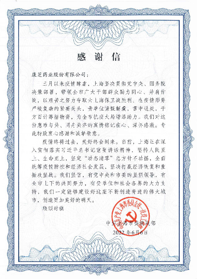 ͬÐÄÊØ¡°»¦¡±£¡BOBtyÒ©ÒµÊÕµ½Öй²ÉϺ£ÊÐίͳս²¿Ð»Ð»ÐÅ